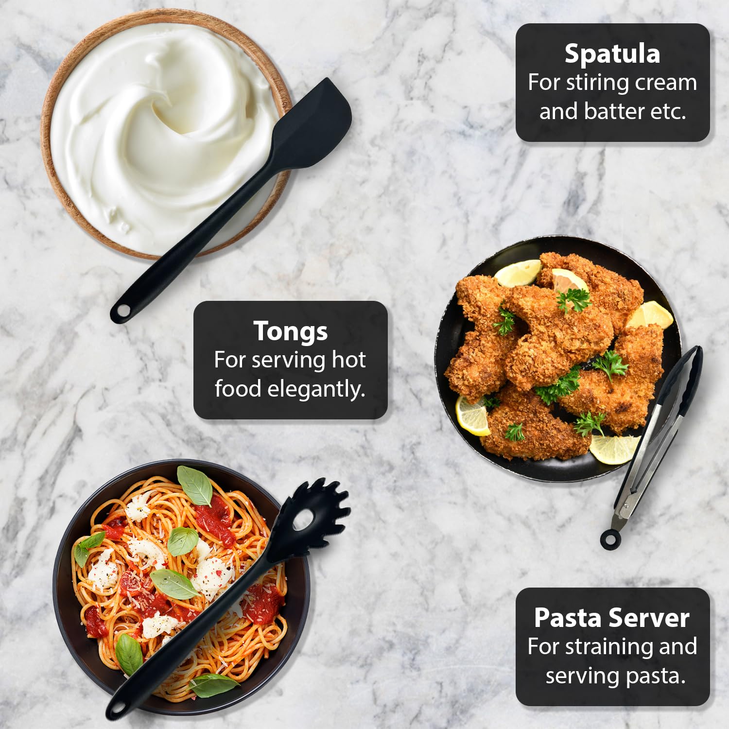 FOOD-GRADE SILICONE: More heat resistant and durable than wood, stainless steel, or bamboo, and also resists chipping, warping, melting, and other problems. These heat-resistant cooking gadgets can withstand temperatures of up to 446°F (230°C).