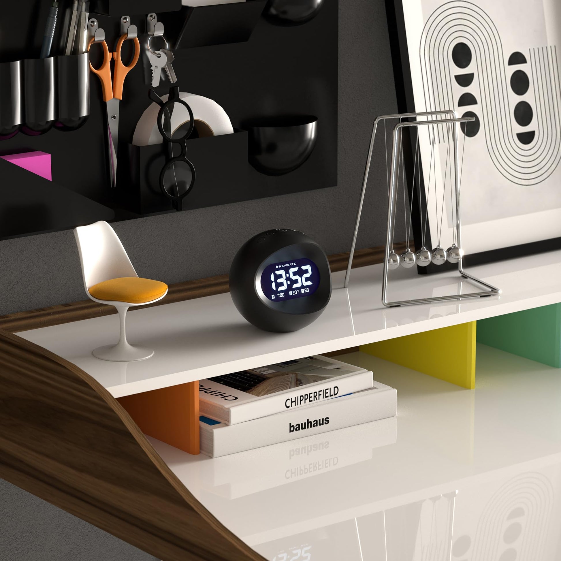 NEWGATE Center of The Earth Bedside Digital Alarm Bedroom Accessories LCD Screen Desk Clock, Acrylic, Black, cm