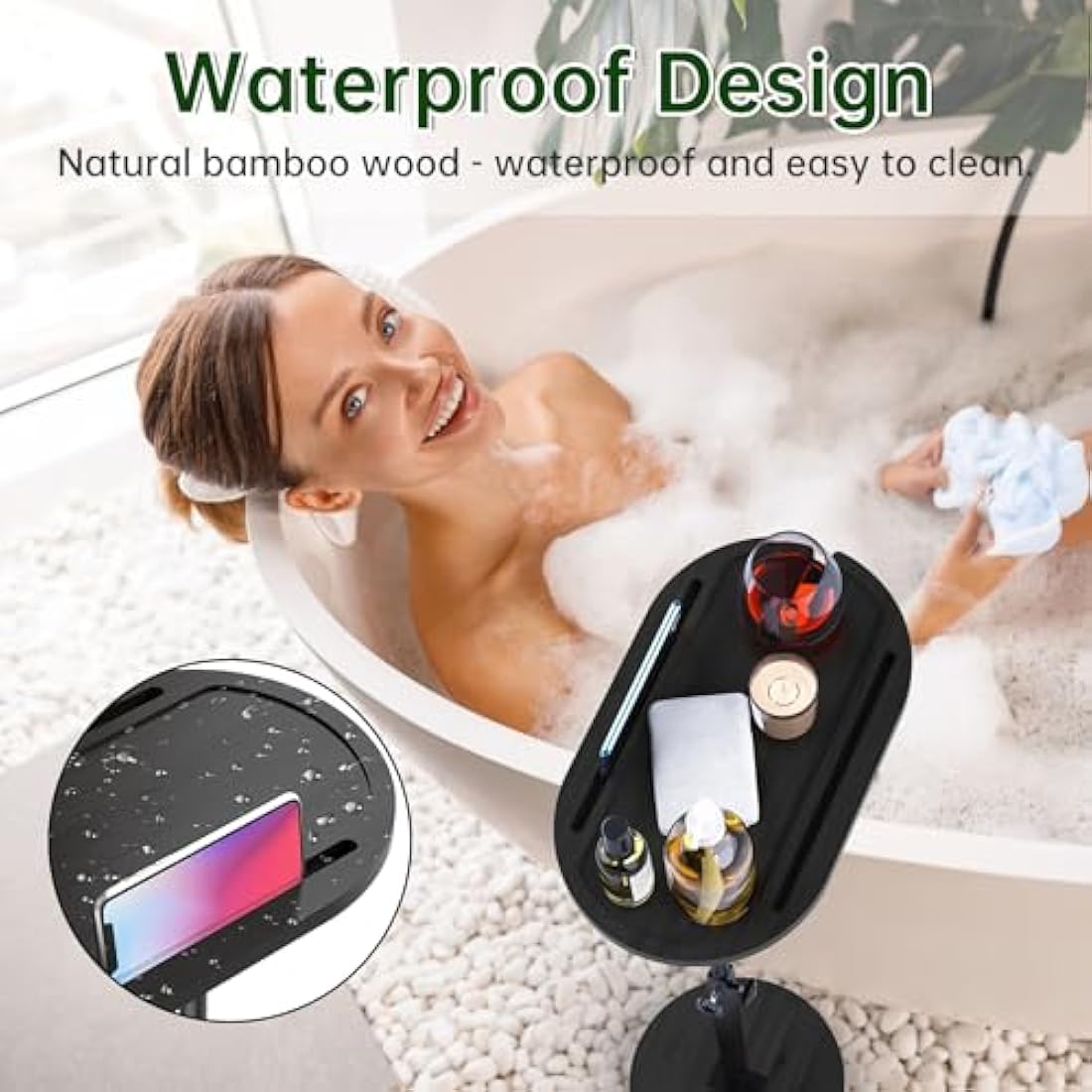 【Versatile Use for Everyday Convenience】It serves not only as a bathtub side table but also as a shampoo rack, coffee table, sofa armrest tray, or bedside table. Additionally, it functions as a breakfast tray, providing convenience for bedridden patients and the elderly.