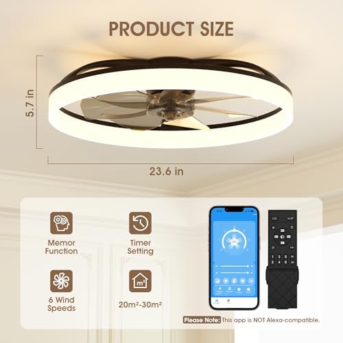 6-Speed Silent Airflow: NIORSUN low profile ceiling fans with lights and remote provides six distinct speed options, enabling you to select the perfect airflow intensity for your comfort preferences. Operates at ≤35dB(A) for whisper-quiet performance - reduces noise to 30dB(A). Achieves full-room air circulation without disrupting conversations or media playback