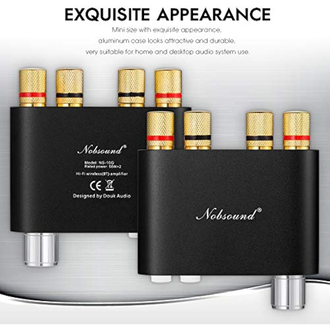 Nobsound NS-10G Bluetooth 5.0 2 Channel Power Amplifier HiFi Stereo Audio Mini Amp Wireless Receiver 50Wx2 for Home Speaker with USB & Bass Sound Effect (Black)