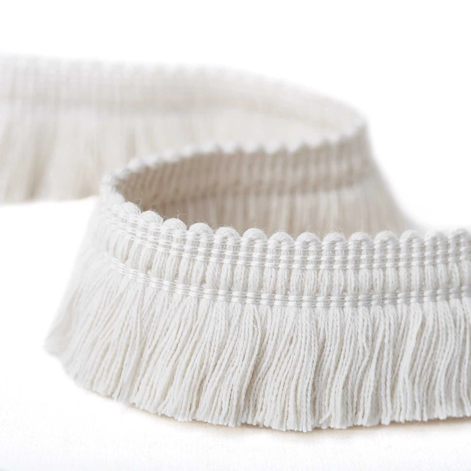 A decidedly chunky wool cut rouche with a detailed loop braided head, Norton is intentionally dense for that classic English interior. It is bold and has substance, crafted from 100% wool. The head of this trim has been made deeper to be more decorative in its applications. When trimming the edge of upholstery, the detail is not lost in a deep border.