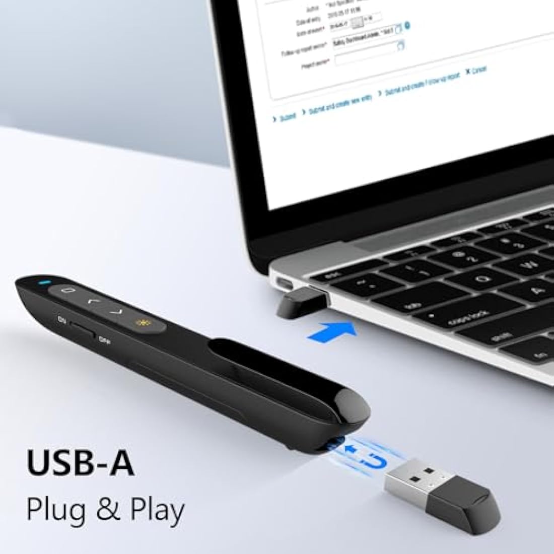 Connectivity & Compatability - Connect via USB-A and plug & play, no software needed for slide control. The presentation clicker is optimized to work with Windows, macOS, Android and Linux and all leading presentation software include PowerPoint, Prezi, Keynote, Google Slides, Propresenter, MediaShout and more.
