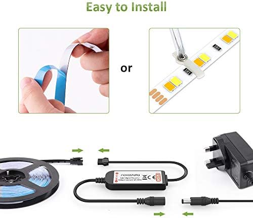 【Tunable White LED Strip Lights】Tunable color temperature available from warm white 3000K, natural daylight white 4500K to cool white 6500K. Buy one Novostella Tunable White LED Strip Lights, means in fact getting three kinds of white strip lights to cover much more of your lighting needs.