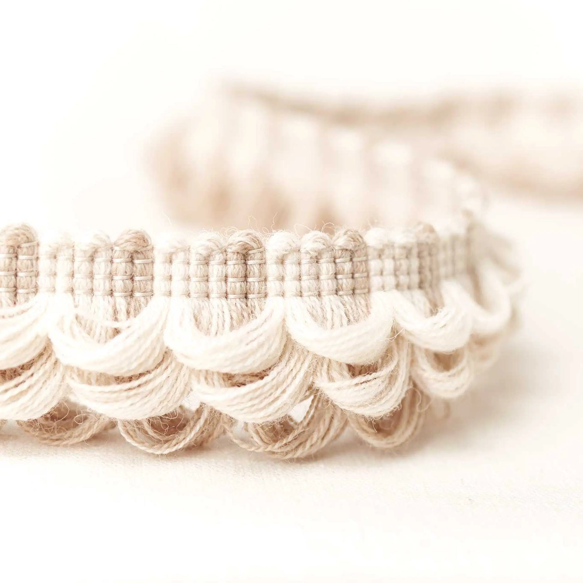A three tiered loop fringe, the Nunwick was developed especially for Sanderson and Salvesen Graham owing to our desire for something that truly encapsulates the luxury of English country interiors. It has a classic swags and tails style, mimicking that of drapery in a stately home, and uses three tones in each colourway to achieve this highly layered effect. The variation of tones present is unique to each colourway.