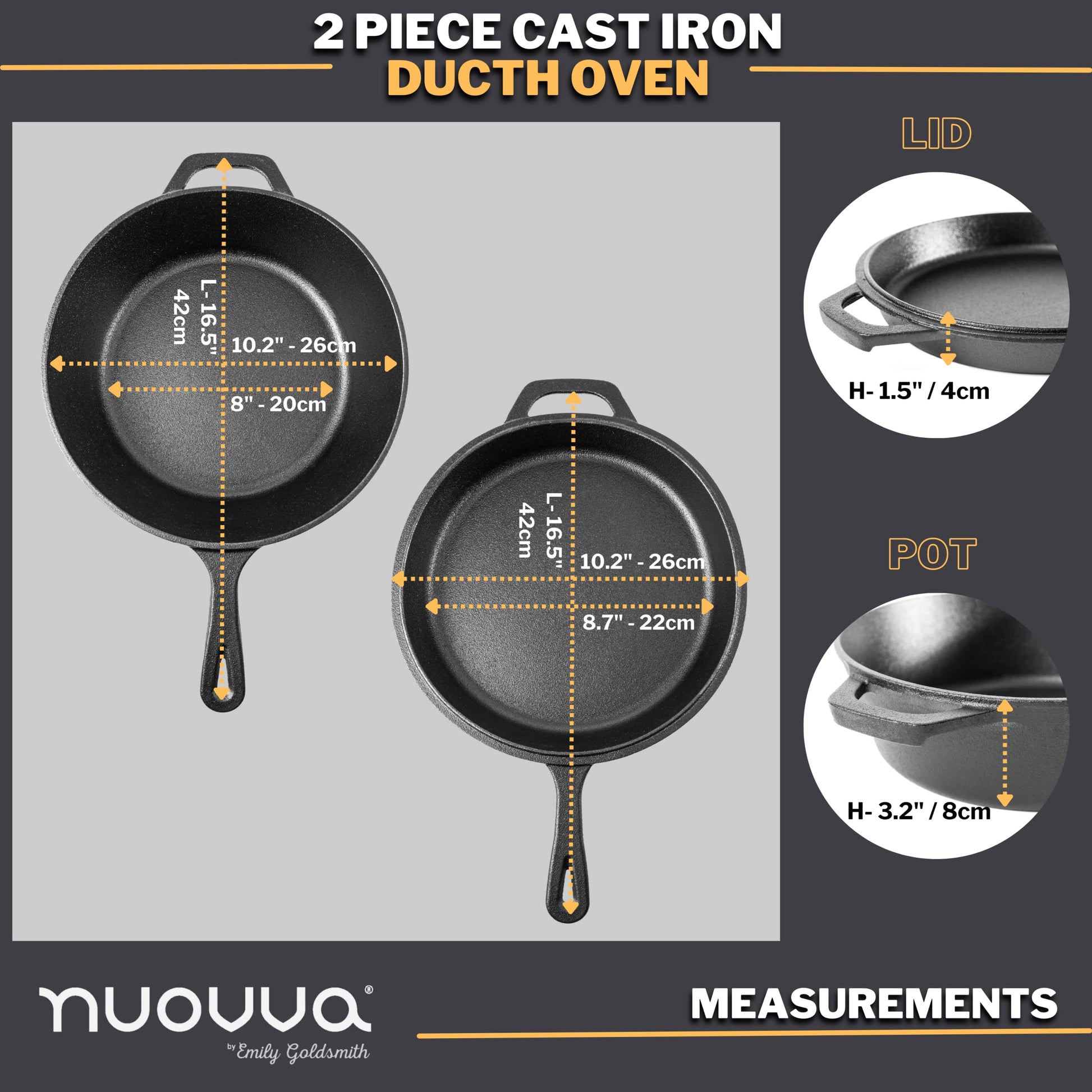 nuovva 2pcs Cast Iron Skillet Set – Pre Seasoned Skillet Frying Pan – Oven Safe Grill Cookware Set for Outdoor & Indoor Use – (Chef Set 10-inch 25cm and 12-inch 30cm)