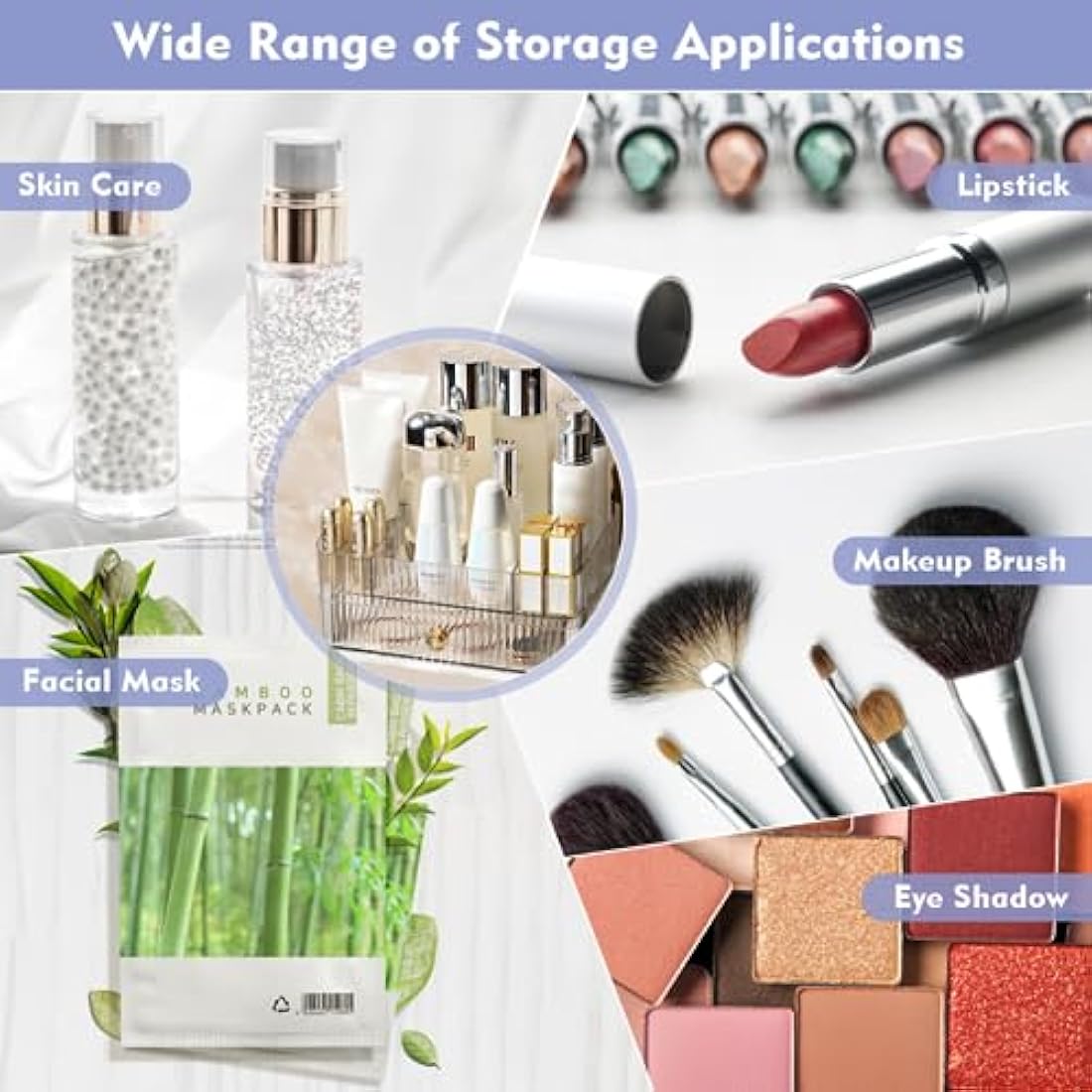 💄Trapezoidal Opening Design: The make up desk organizer has a trapezoidal opening design, allowing you to quickly find what you need and take out and put in cosmetics easily, not only convenient to use, but also prevent cosmetics from tilting or falling, suitable for large and tall bottles.