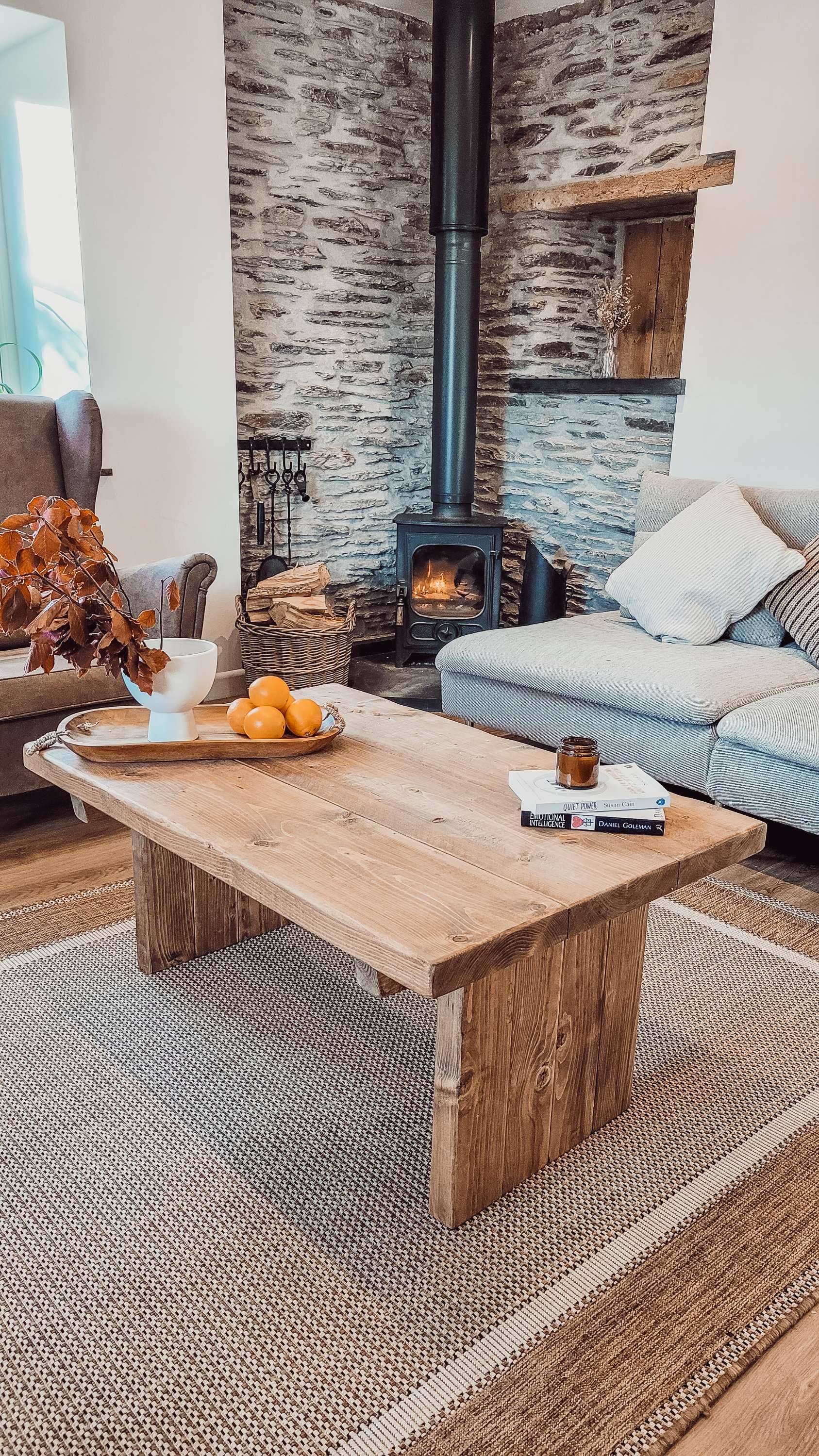 ORIAN Rustic Wooden Coffee Table With Square Legs