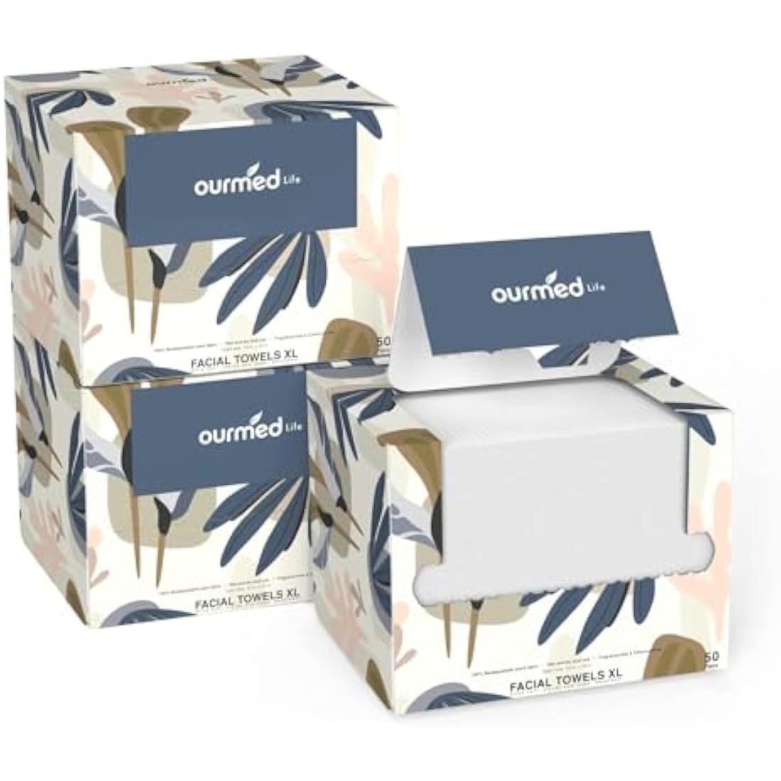 Ourmed Life Face Towels, Disposable Biodegradable Facial Towels for Sensitive Skin, Lint- Free Face Wipes for Washing Face, Skincare and Makeup Remover, Dry Wipes, 10"×12" Extra Large, 150 Count