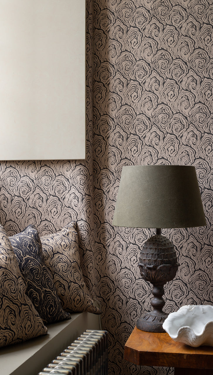 Oysters wallpaper can be hung vertically in both directions for large spaces& feature walls. Available in organic tones for seductive softness or monochrome for a striking graphic statement.