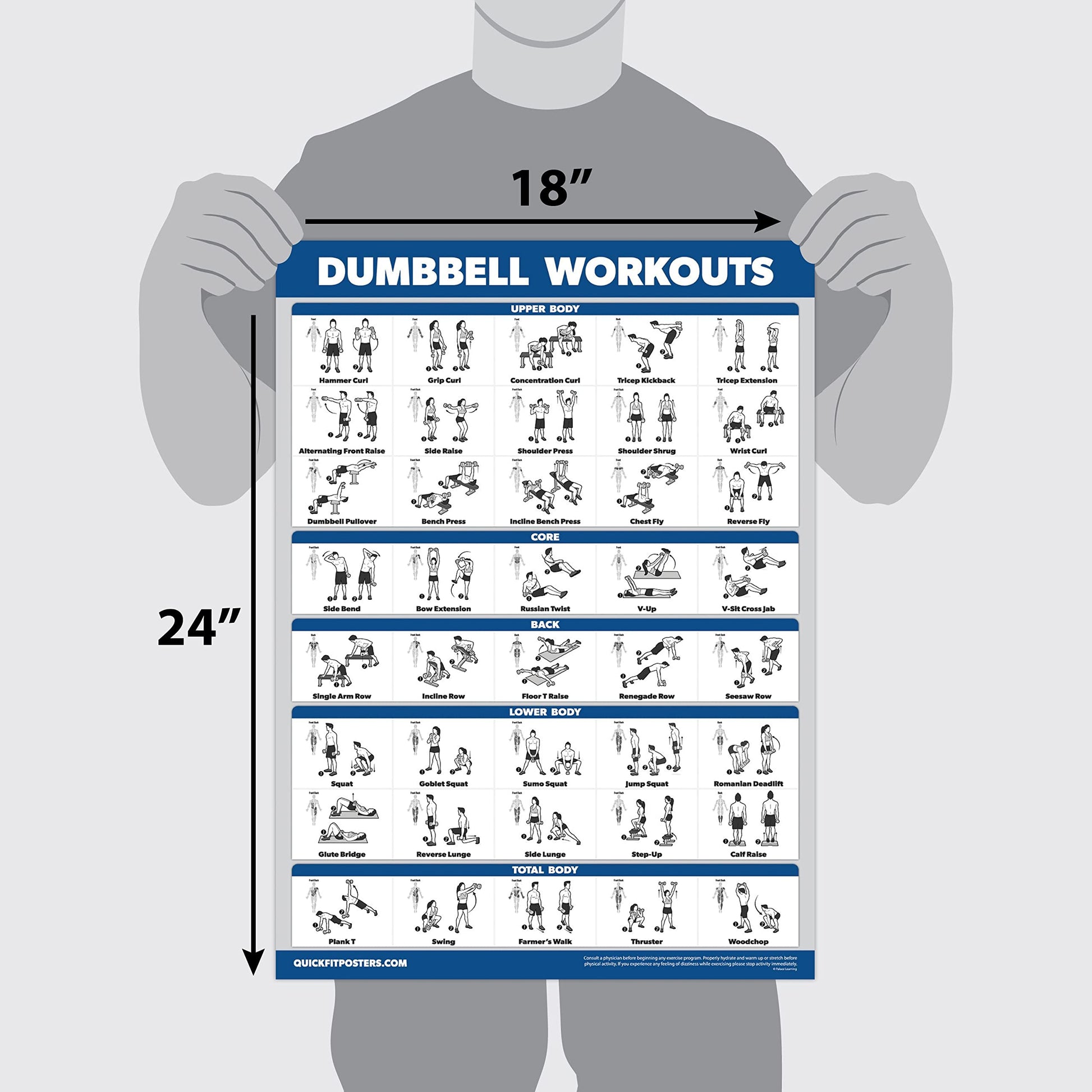 Palace Learning 16 Pack - Exercise Poster Set: Dumbbell, Suspension, Kettlebell, Resistance Bands, Medicine Ball, Battle Rope, Stretching, Bodyweight,