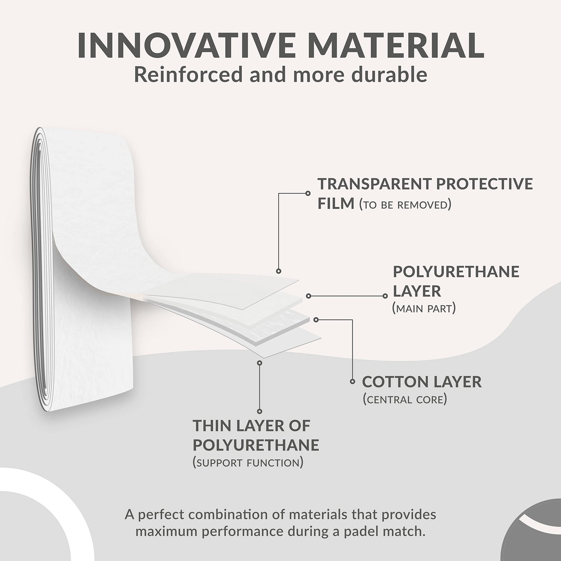 • ABSORBENT: Padel racket grip tape designed to quickly absorb hand sweat. Polyuterane (PU) material features invisible sweatproof micro-holes to keep the overgrip dry.