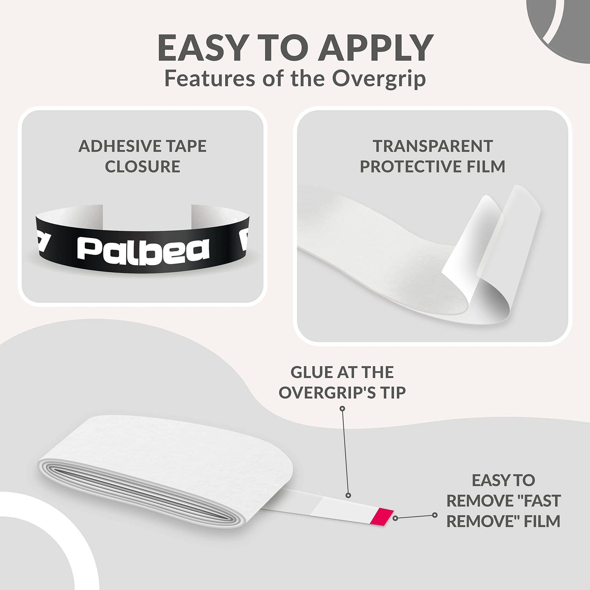 Palbea Padel OverGrip in White - Extra Tacky - Pack of 60 - Superior Sweat Absorption - Non-Slip Grip Tape for Padel & Tennis Rackets - Soft Feel -