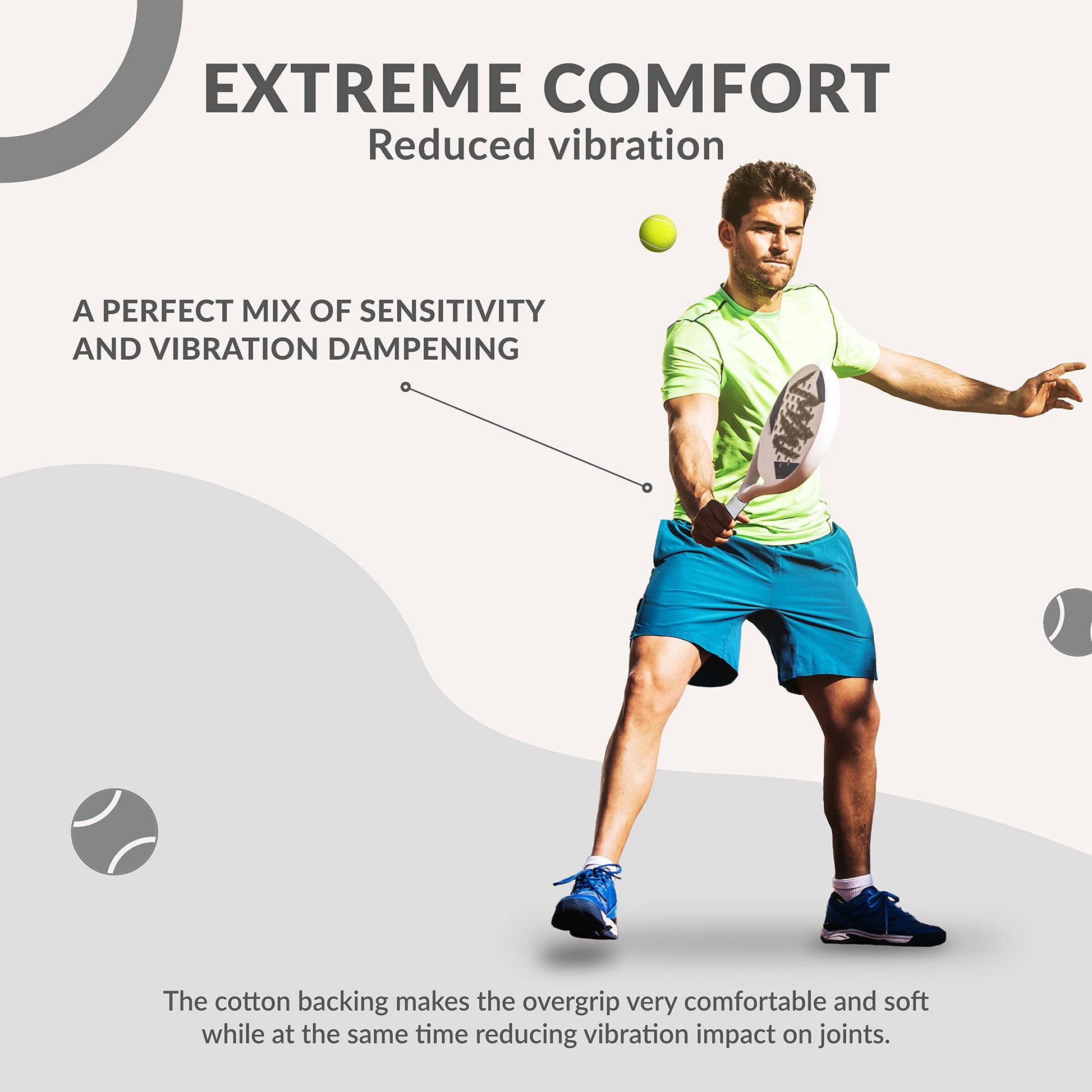 • COMFORTABLE: Perfect mix of sensitivity and vibration dampening. The cotton backing makes the padel tennis overgrip very comfortable and soft while reducing vibration and impact on joints.