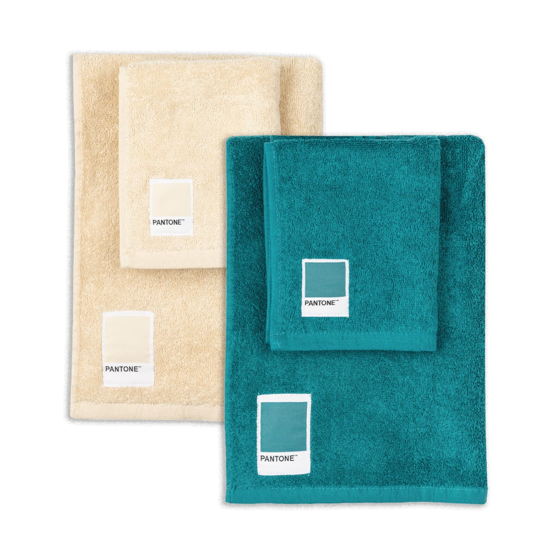 The order includes 2 sets of hand towels (face 50 x 100 cm and guest 40 x 50 cm in teal and vanilla colour) in pure cotton with PANTONE™ chip in jacquard coordinated with the sponge, easily washable thanks to the fabric that allows a long lasting hold. They can be conveniently stored away after physical activity or a busy day at work, absolutely versatile and multi-purpose indoors or out. Made from 100% cotton terry towelling and provides a soft feel and effective absorbency. Oeko-Tex certified, manufactured using materials that are free from harmful substances and environmentally friendly. The well-known brand that deals with the colour identification system and which is used daily by creatives around the world for colour inspiration. In collaboration with SWEET HOME, the PANTONE™ product line for the home is born. Discover the endless colour variations to brighten up the spaces of your home