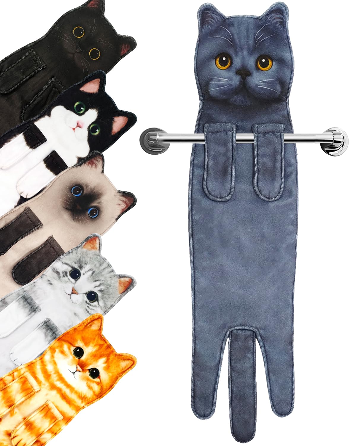 • ?【Perfect New Home Decor】 the kitten's paws are designed with snaps for easy hanging on the towel rack and do not fall off easily. Inspired by a cat being picked up by its owner, this cat towel has a very realistic design that makes you feel compassionate and is also a home essential.