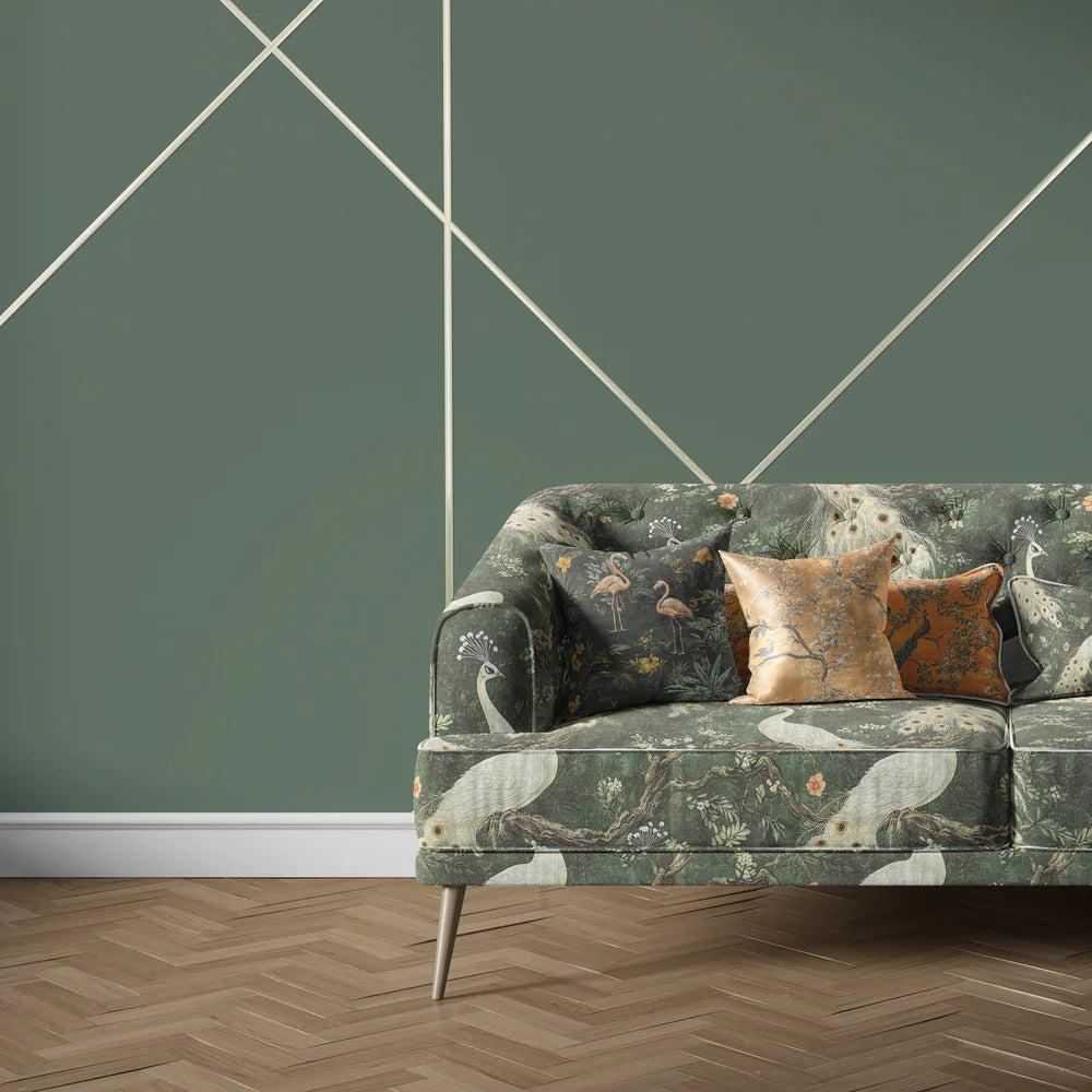 Pavone No.12 blends elegance and enchantment in one remarkable bird upholstery fabric, showcasing pale ivory peacocks perched gracefully within a lush canopy of foliage. Set against a rich green backdrop, this painterly design evokes timeless romance with a surreal edge, making it ideal for bold interiors that celebrate nature and narrative.