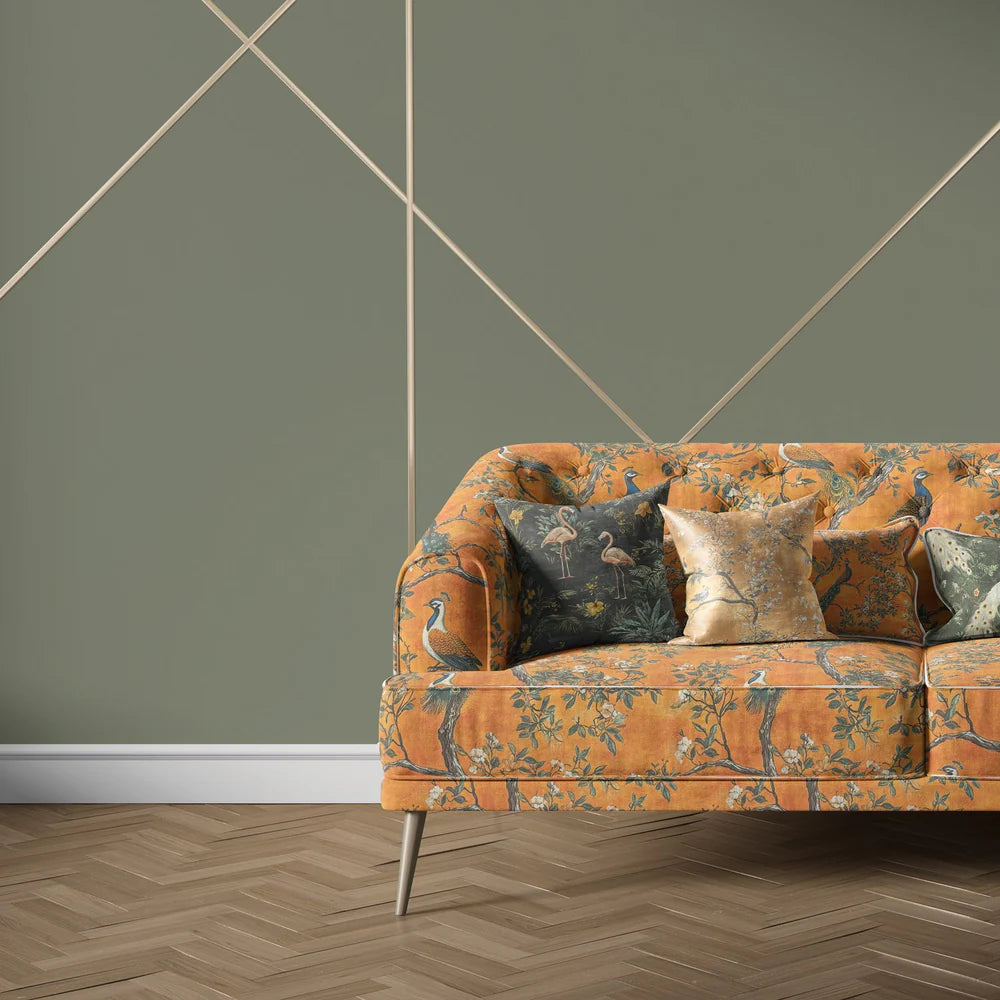 Rich with colour and heritage-style charm, Pavone No.4 is a vibrant bird upholstery fabric in a bold ochre orange tone. The design features majestic peacocks perched on sweeping branches, set against a textured golden base that brings warmth and visual drama to your interior. A celebration of natural beauty and illustrative detail, this fabric works beautifully across statement upholstery and standout soft furnishings.