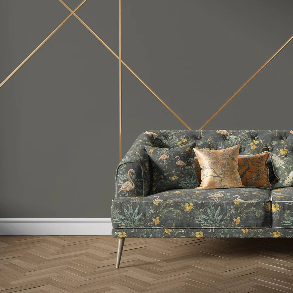 Bring playful elegance into your interiors with Pavone No.8 – a luxurious bird upholstery fabric that captures the charm of flamingos among flourishing botanicals. Set against a rich charcoal backdrop, the ochre and green foliage contrasts beautifully with the coral-pink tones of the birds, creating a tropical visual escape. The painterly detailing and tonal layering lend this fabric a lush, illustrated quality ideal for statement upholstery, bold curtains, or maximalist cushions.