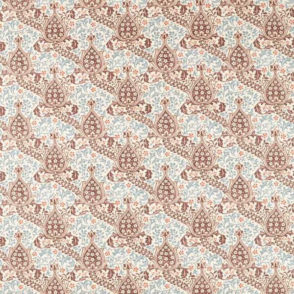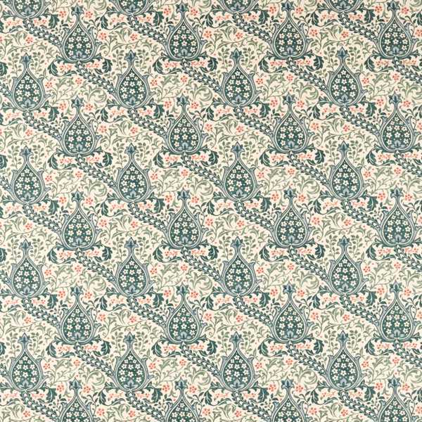 Originally designed as a textile, the Persian Tulip features elegant teardrop-shaped motifs connected by striped ribbons. This updated design honours the traditional Persian aesthetic admired by William Morris and John Henry Dearle. A striking diagonal layout leads the eye through the piece, where tulip heads are nestled within a chevron ribbon. Coloured in soft, tonal hues, this expressive design captures the delicate beauty and fluidity of its archival inspiration.