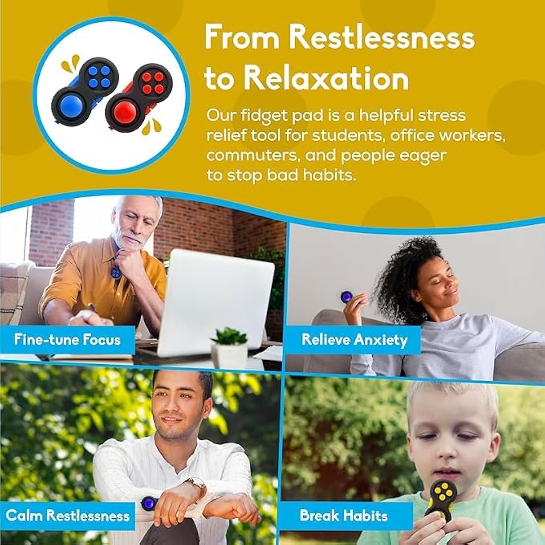 Helpful in Maintaining Focus and Relaxation: The PILPOC Fidget Pad Controller is designed as a tool to aid in maintaining focus and relaxation. It is suitable for a wide range of users, including students, office workers, and those who enjoy tactile stimulation to stay engaged and relaxed.