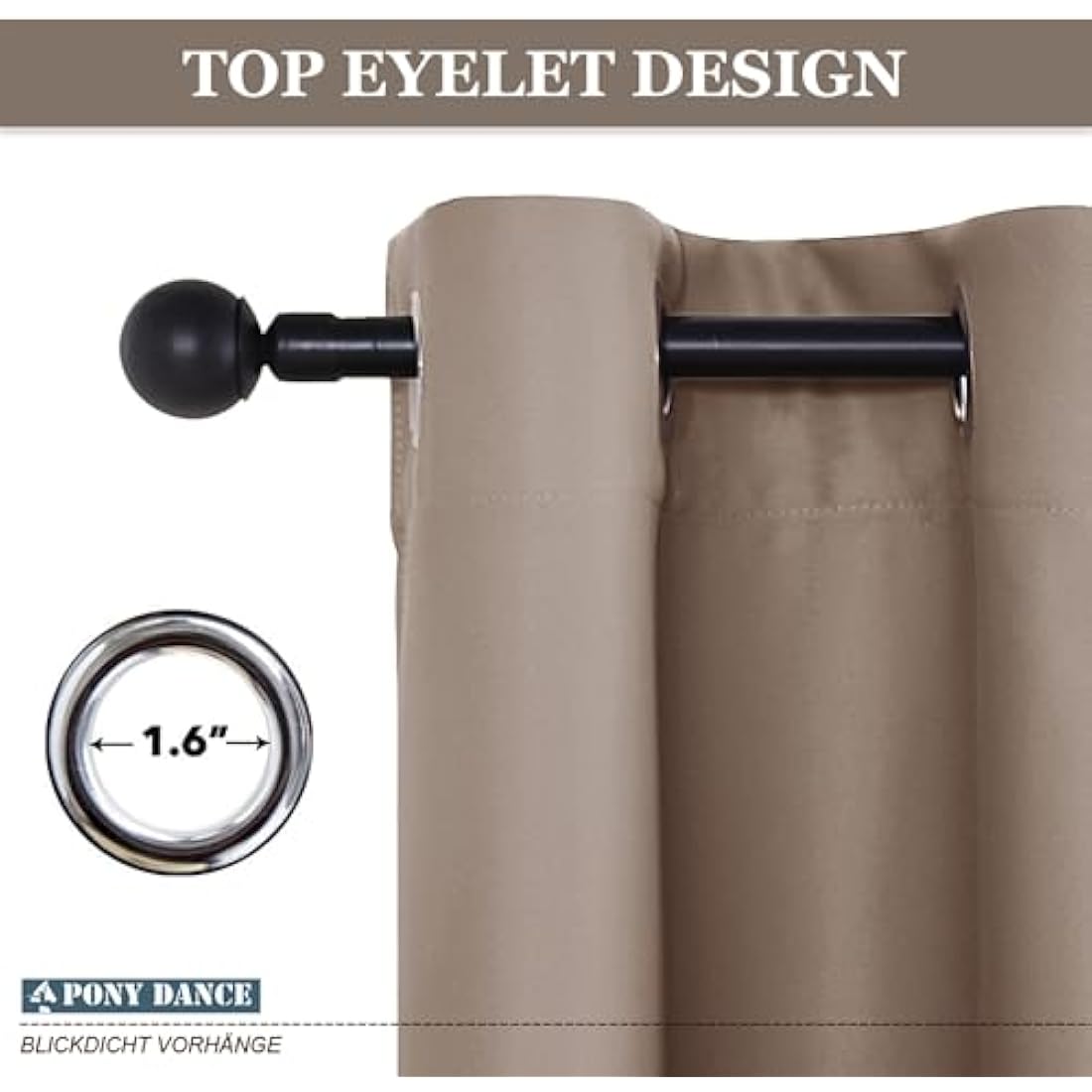 • Top Eyelet - 8 silver chromes(inner diameter is 1.6 inch) make the blackout curtain panels ready to use, universal fit most of the curtain poles which diameter up to 1.5". Easy to put up and slide.