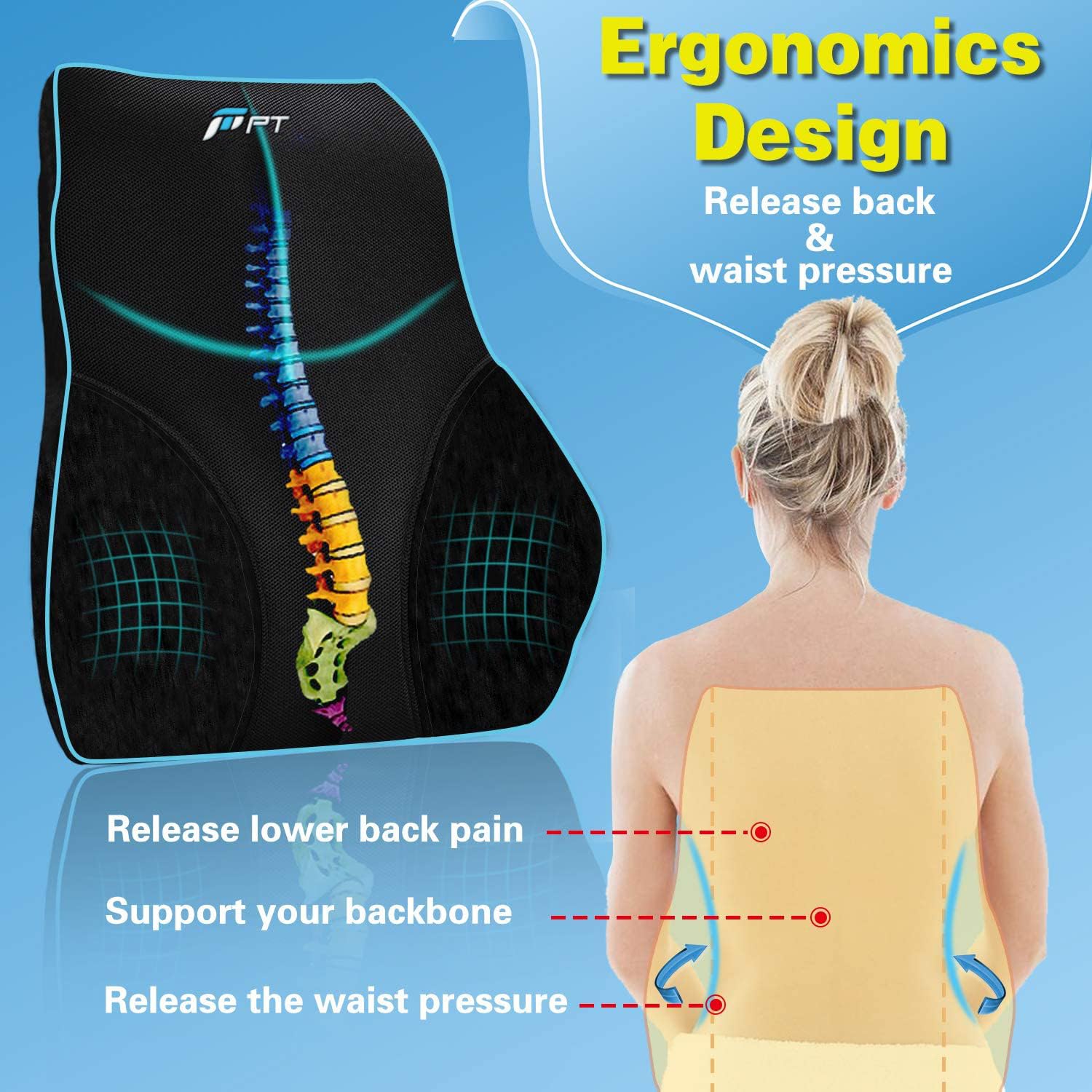 POOTACK Pillow, Memory Foam Back Support Cushion Lumbar Support for Office Chair, Car Seat, Recliner, with Extension Strap and Carry Bag Black