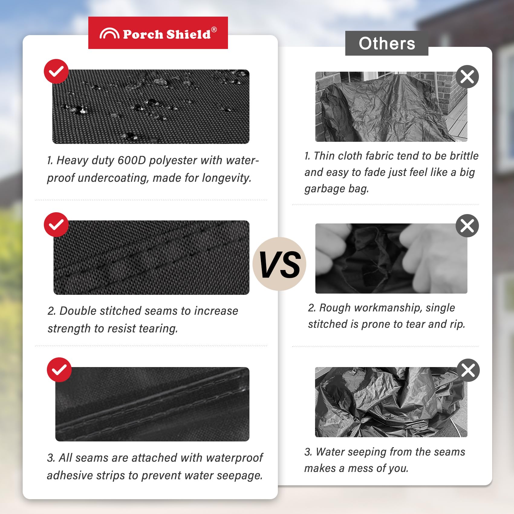 Fadeproof & Waterproof Material - It is made of 600D tough polyester with waterproof undercoating. UV resistant treatment makes it stay vibrant for years. Enhanced with high-level double stitched and sealed seams. Ripstop enough to prevent the firepit cover against sun, rain, snow, wind, and dust.