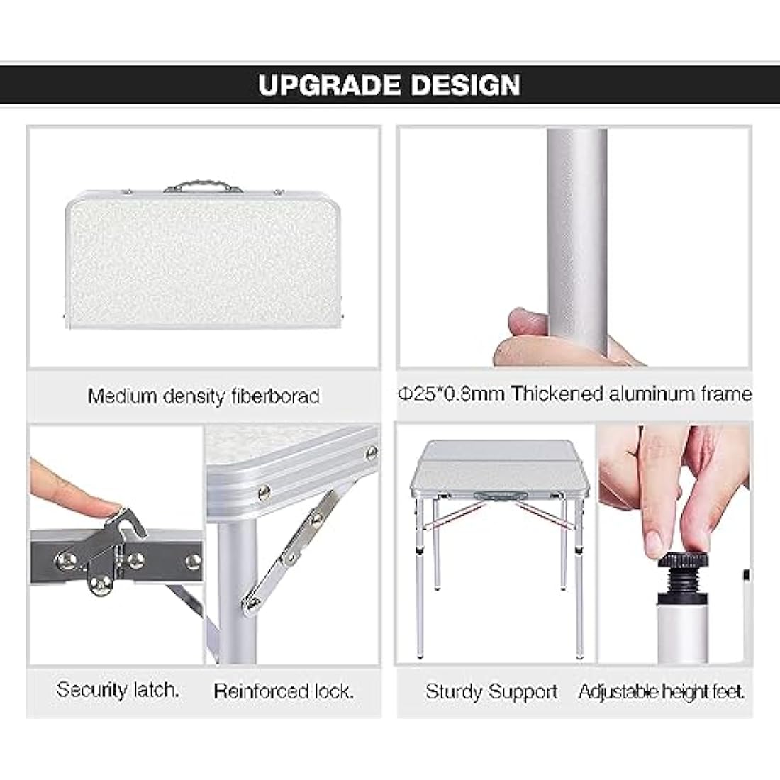 Premium Materials: Our tabletop is made of medium density fiberboard, the frame and legs are made of upgrade aluminum alloy. This high quality camping table is water-proof & stain-resistant, heavy-duty & lightweight, sturdy & durable.