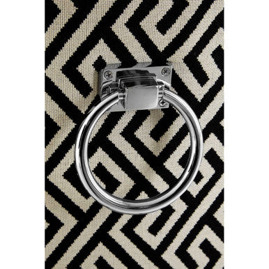 Orsina brings boutique detail to dining with the Regents Park Greek Key Dining Chair. The Greek Key Dining Chair pairs grey linen upholstery with black wooden legs, then adds a crisp monochrome Greek key pattern and a decorative metal knocker for a tailored, hospitality-inspired finish.