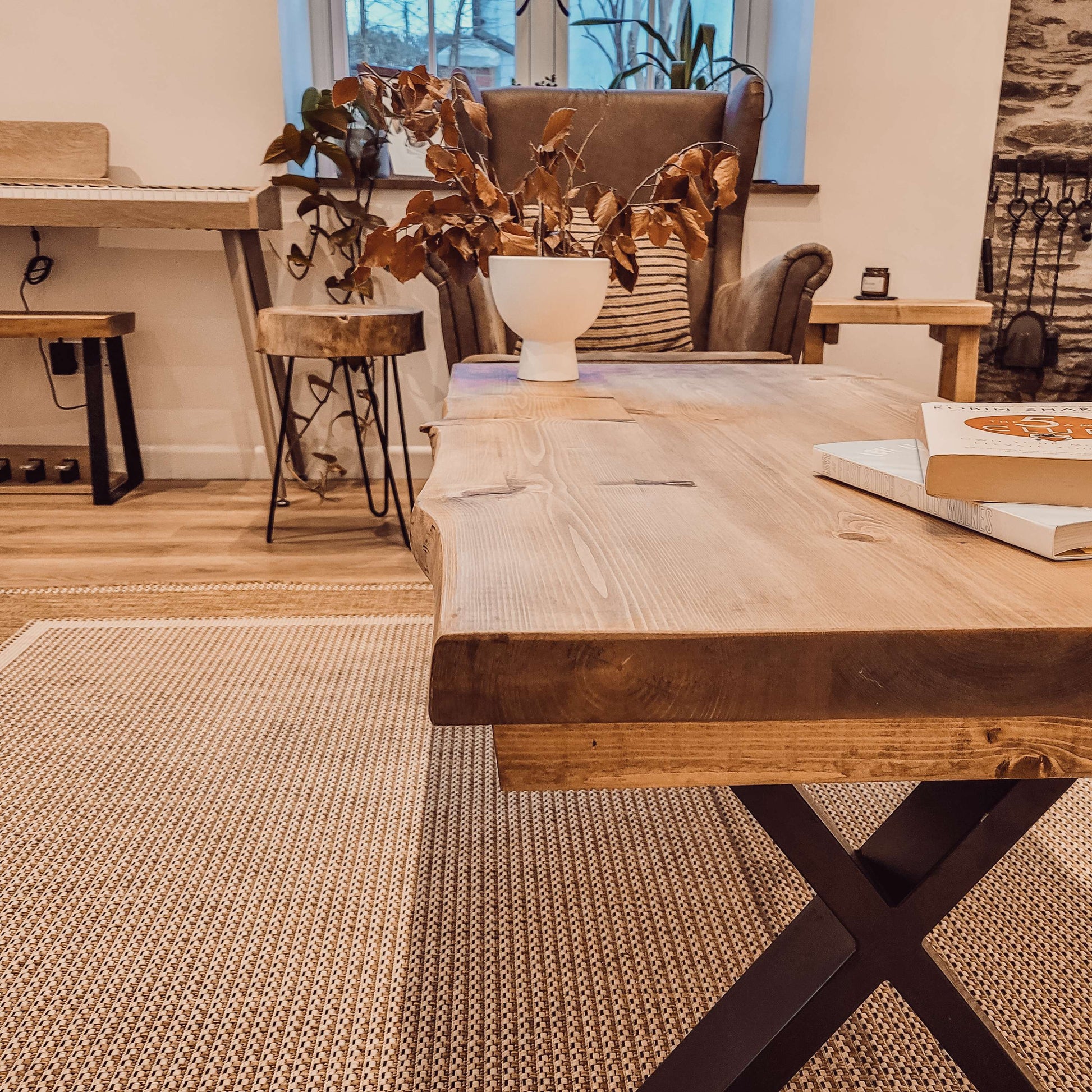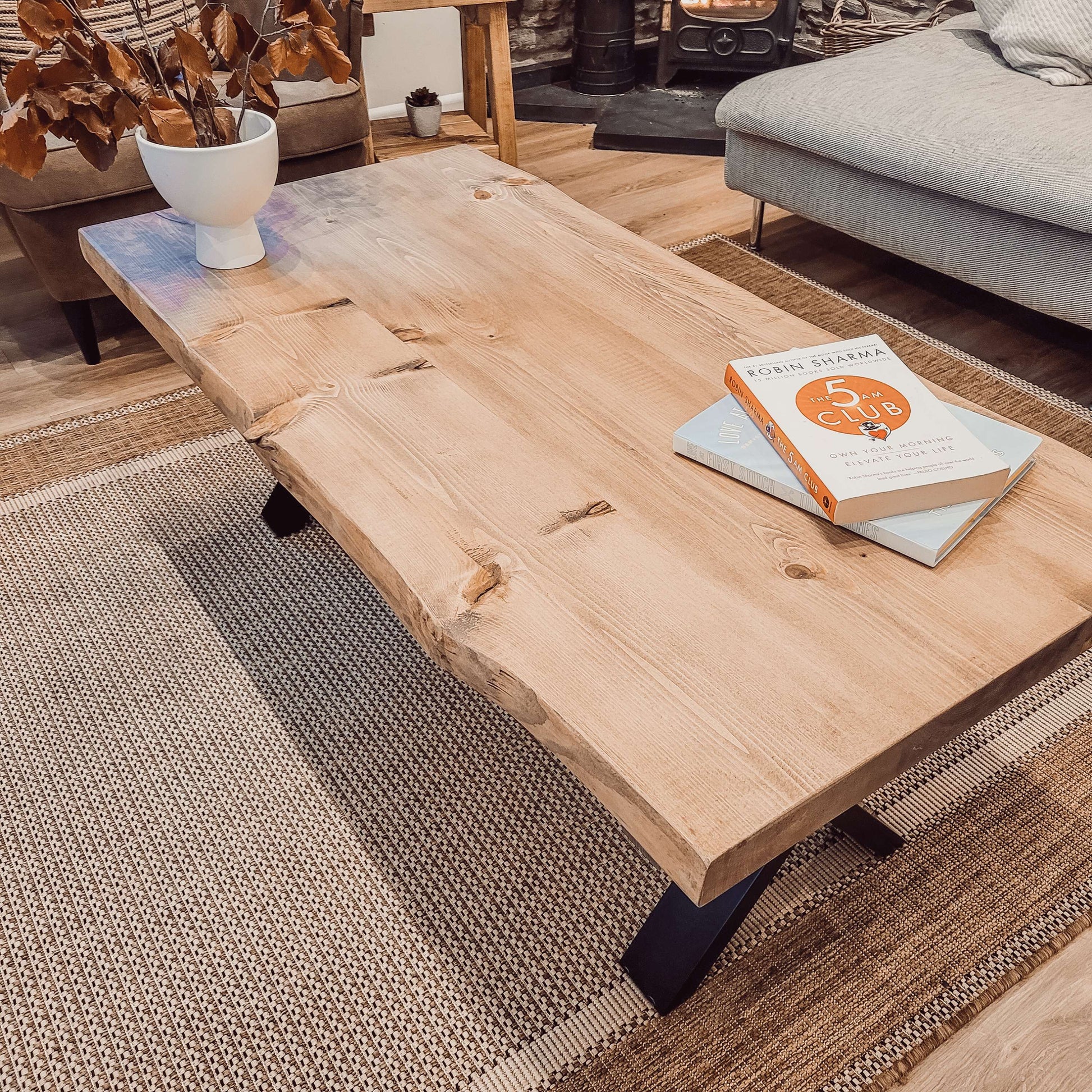 RITA Live / Waney Edge Coffee Table With Metal X Legs