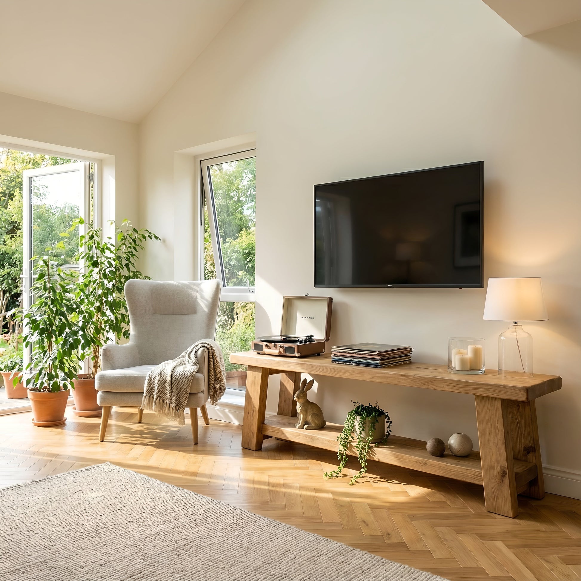 PICTURED ITEM: The pictured TV Unit is 120cm long, 30cm wide, 40cm high and Dark oak wax finish.