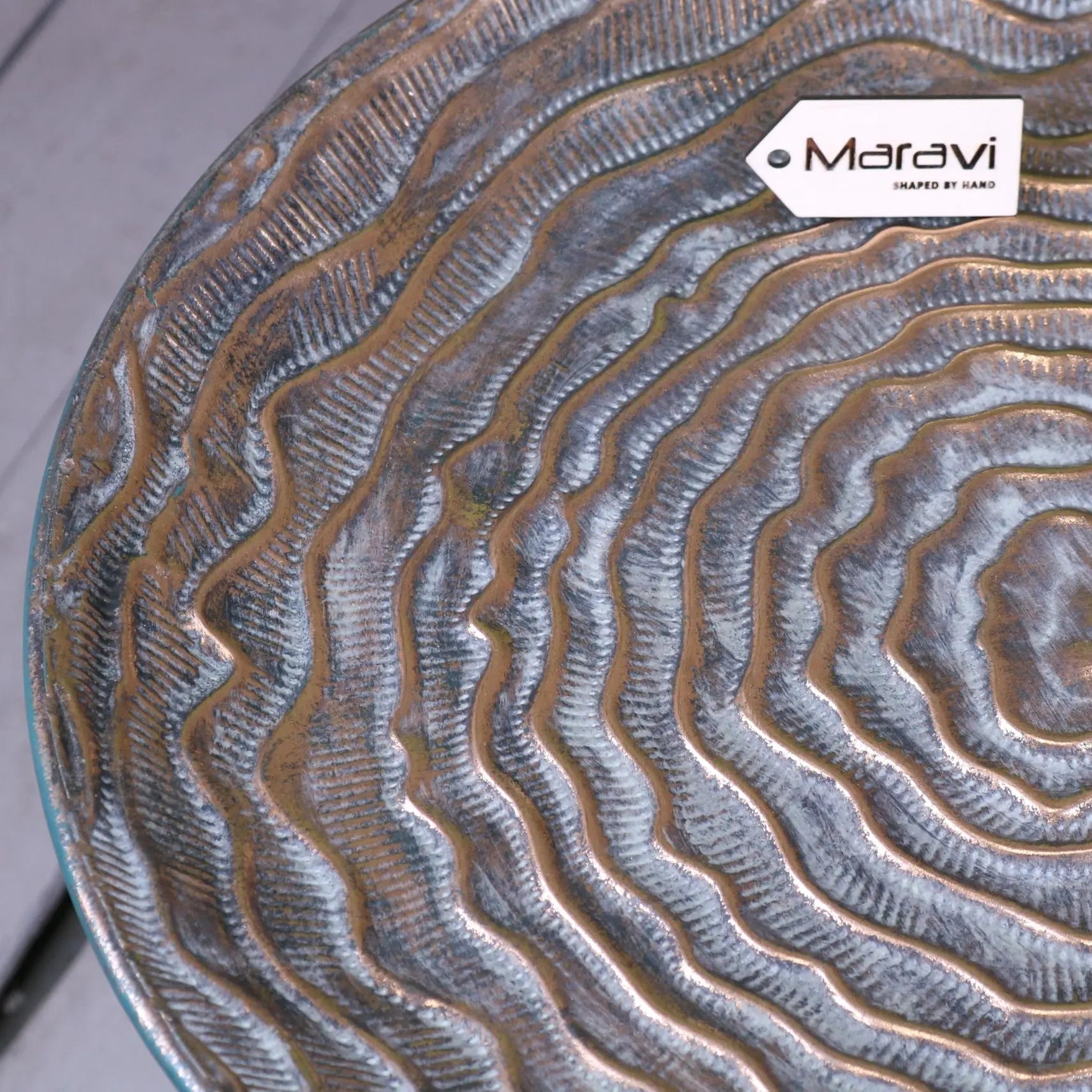 Made from metal, this side table boasts an antique patina finish, making it a great addition to both modern and rustic settings. The lightweight design ensures easy mobility, allowing you to place it wherever needed.