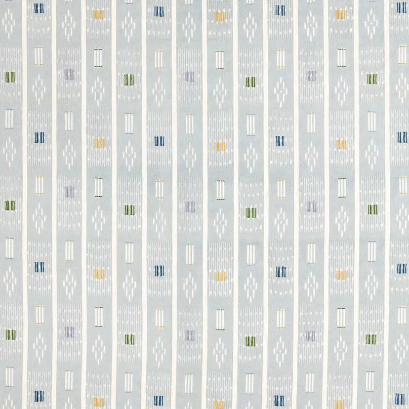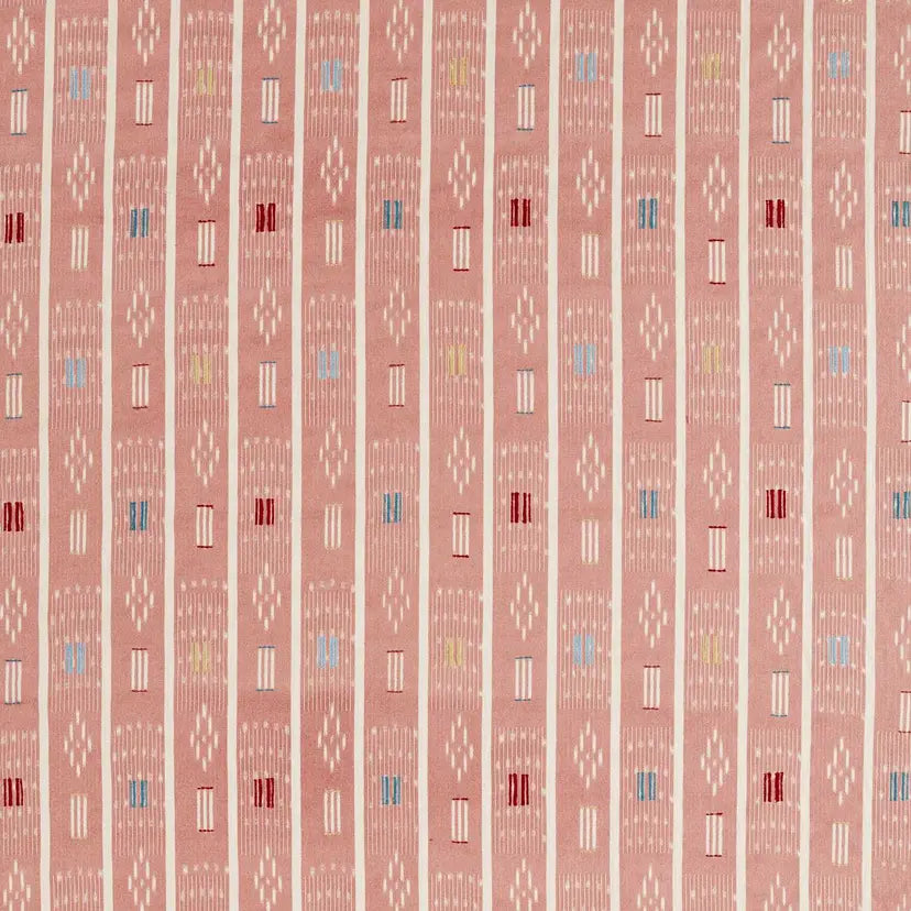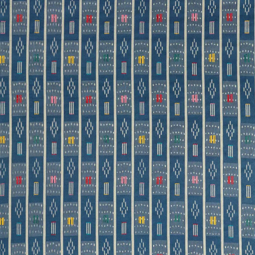 Safar is an exquisite new design, inspired by an African baule cloth found in the archive. A complex design, the ikat warp has been printed with embroidery added. Adding to Safar's unique nature, the yarns are screen printed before being woven into the weft and then embroidered, creating a wonderfully detailed design where the intricate yarn-dying technique comes through beautifully.