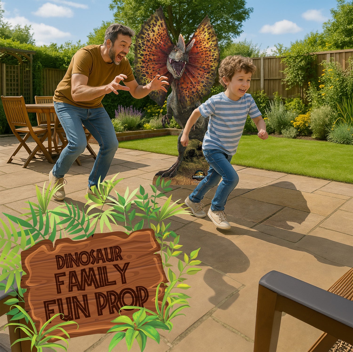 The Dilophosaurus is always a hit with dino lovers, and this high-quality cardboard cutout makes it easy to bring prehistoric power to your party or room.