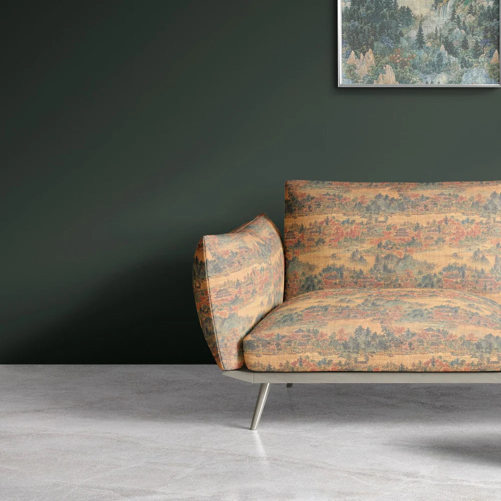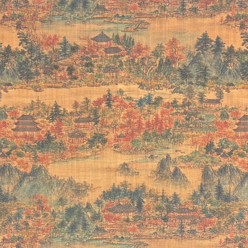 Infused with the romantic brushstrokes of traditional landscape painting, Scenic No.8 is an evocative upholstery fabric that tells a story of calm lakes, distant pavilions, and tree-lined mountain ridges. Rich in ochre, rust, olive, and soft blue tones, this design captures the painterly complexity of a scenic mural while remaining versatile enough for both statement upholstery and subtle layering.