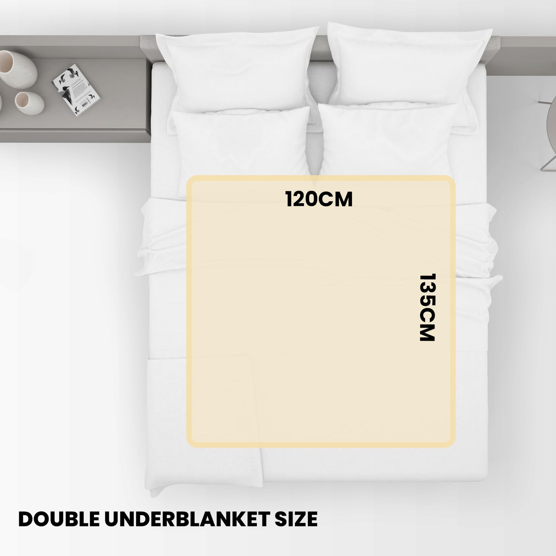 • DOUBLE SIZE: 135cm x 120cm, generous size to fit onto of a double sized bed. (this blanket does not go under your pillows and is 7cm from the edge of each side of the bed allowing it to remain flat at all times)
