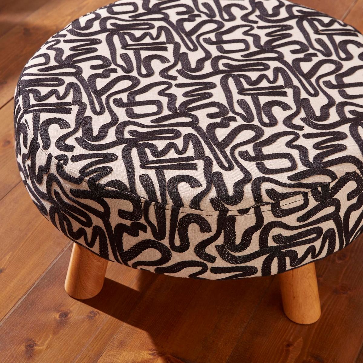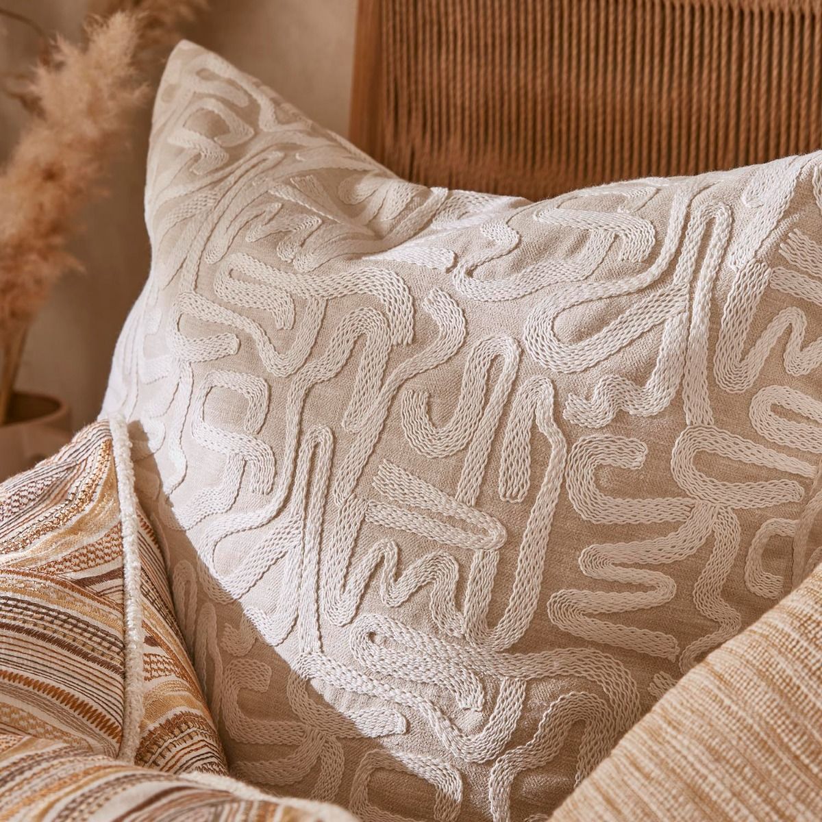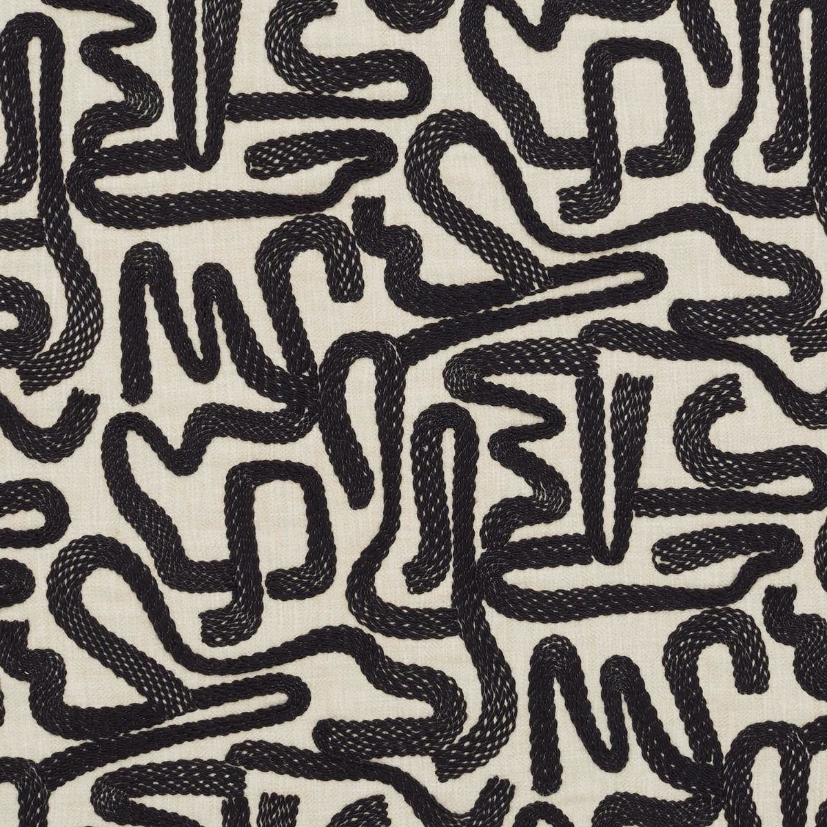 The iLiv Script fabric features a bold, playful, abstract design that resembles freeform handwriting. Woven in neutral linen tones, it brings a modern, artistic texture and a sense of movement to any room.