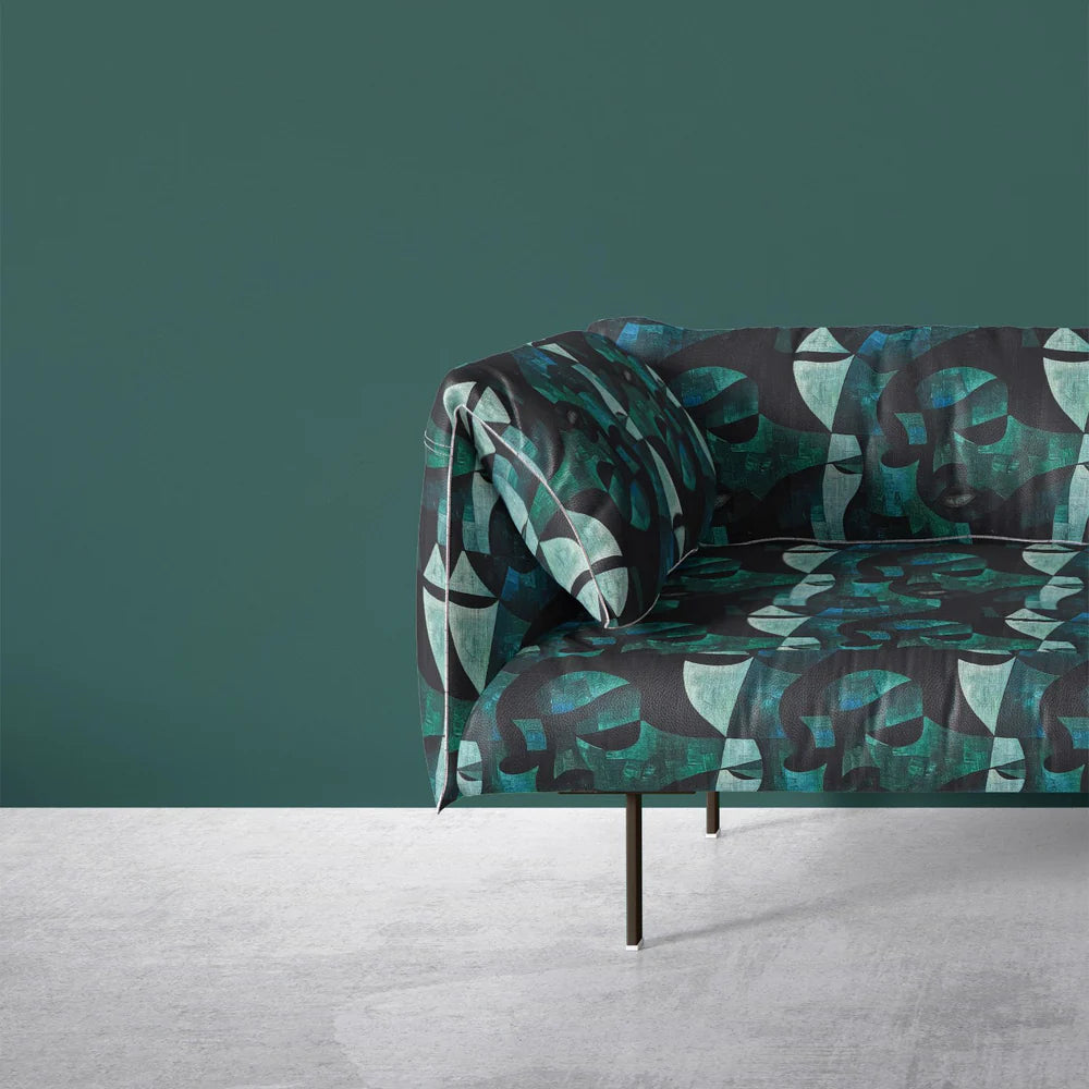 Sculpture No.17 is a bold and expressive upholstery fabric that transforms interiors into works of art. Inspired by cubist portraiture and the fluid rhythm of brushstrokes, this design merges deep emerald, teal, and charcoal tones to create a dramatic sense of depth. The abstract facial forms lend the fabric an artistic quality that makes it as much a statement piece as a practical material.