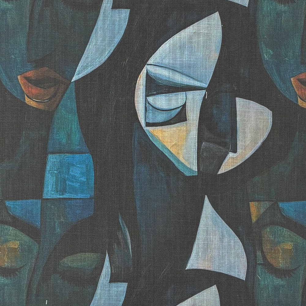 Bring a striking sense of drama and depth into your interiors with Sculpture No.18 Upholstery Fabric, a richly layered design inspired by Cubist forms and abstract portraiture. This fabric captures the emotional weight of sculptural art, with geometric shapes interlocking in a palette of teal, midnight blue, soft grey, and muted ochre. The result is a design that feels both bold and contemplative, making it perfect for interiors that aim to balance modernist edge with timeless sophistication.