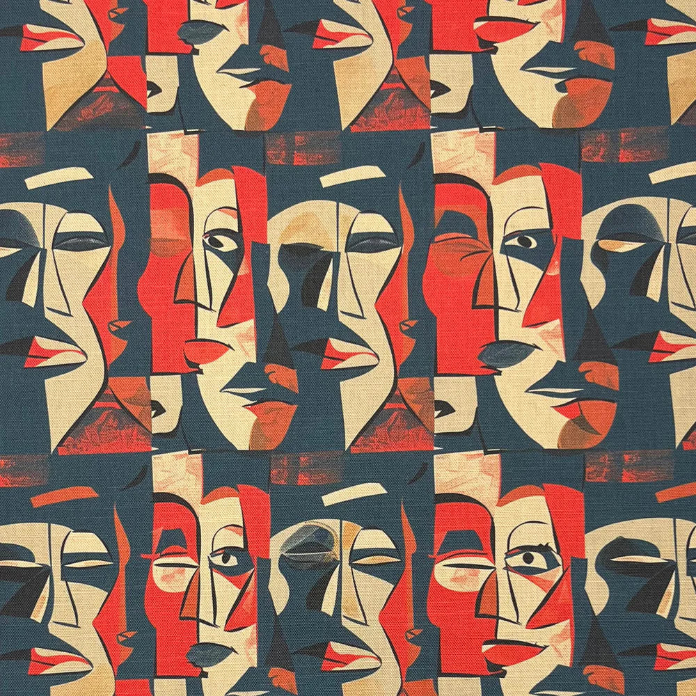 Sculpture No.5 Upholstery Fabric transforms abstract portraiture into high-impact design. Arranged in rhythmic blocks of red, cream, charcoal, and soft beige, this expressive face motif delivers a raw, emotional power ideal for statement chairs or striking wall panels. Every line and angle adds intrigue, turning any piece of furniture into a conversation starter.