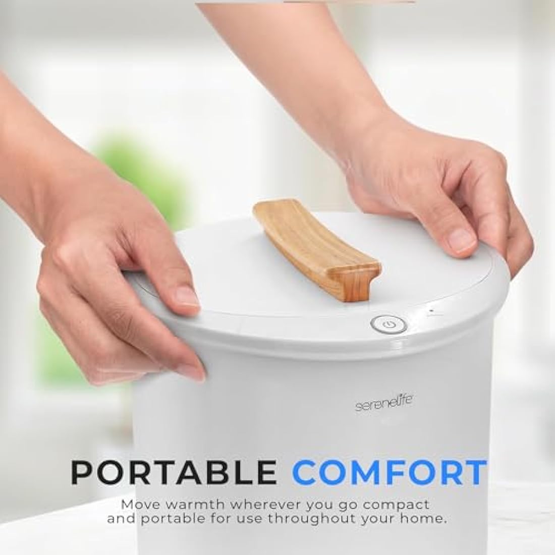 SereneLife Bucket-Towel Warmers, White Large-Towel Warmer for Spa and-Bathroom, Luxury-Towel Heater Gifts for Him & Her, Auto Shut-Off, Fits 2 large-Bath-Towels, Blankets-Bathrobes, PJ's (Bamboo)