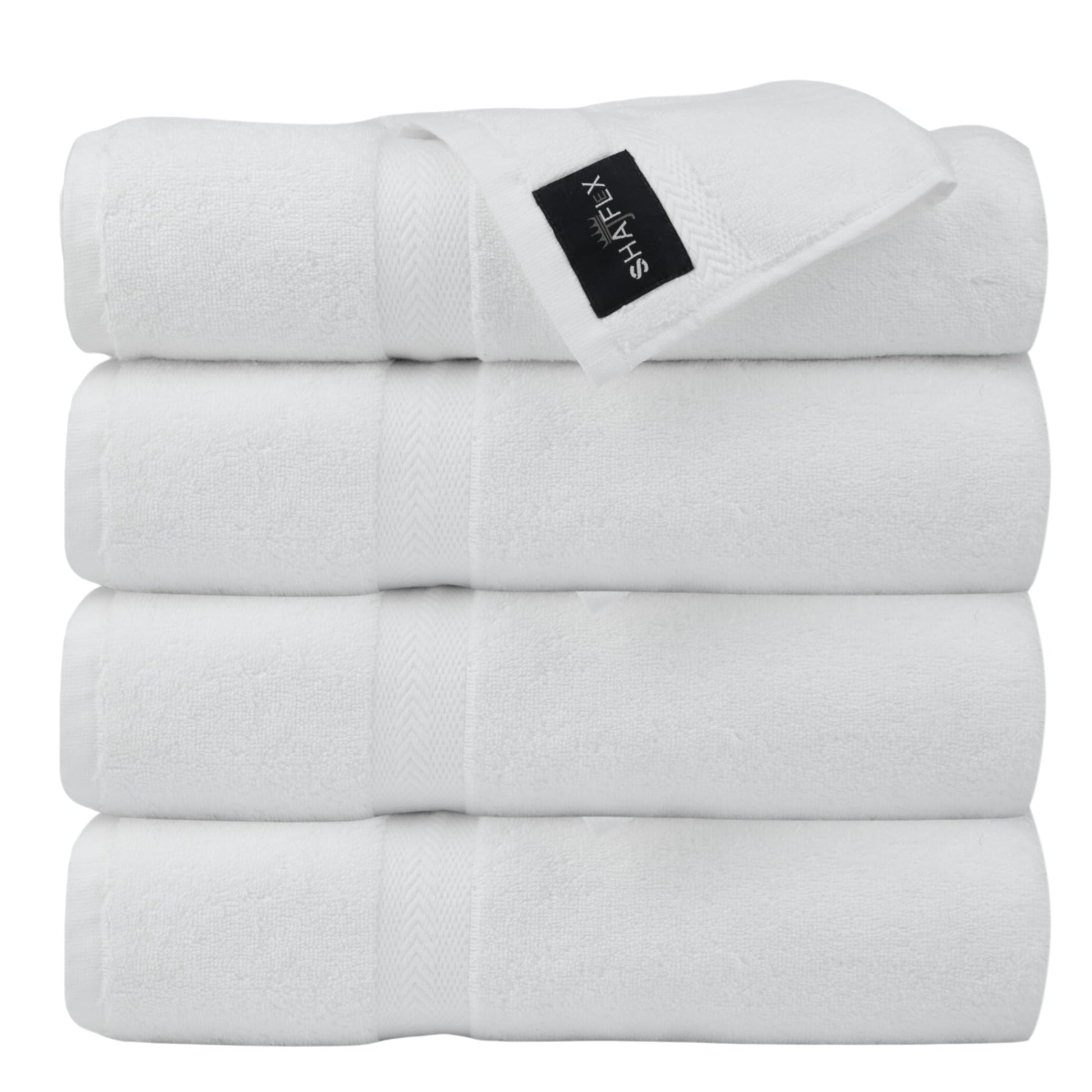 shajflex 4Pcs Bath Towels Sets | 650 GSM Bathroom Bath Sheets | 70X140CM Quick Dry Extra Large Towel Accessory Set | Highly Absorbent 100% Luxury Cotton|Bathroom Accessories (White)