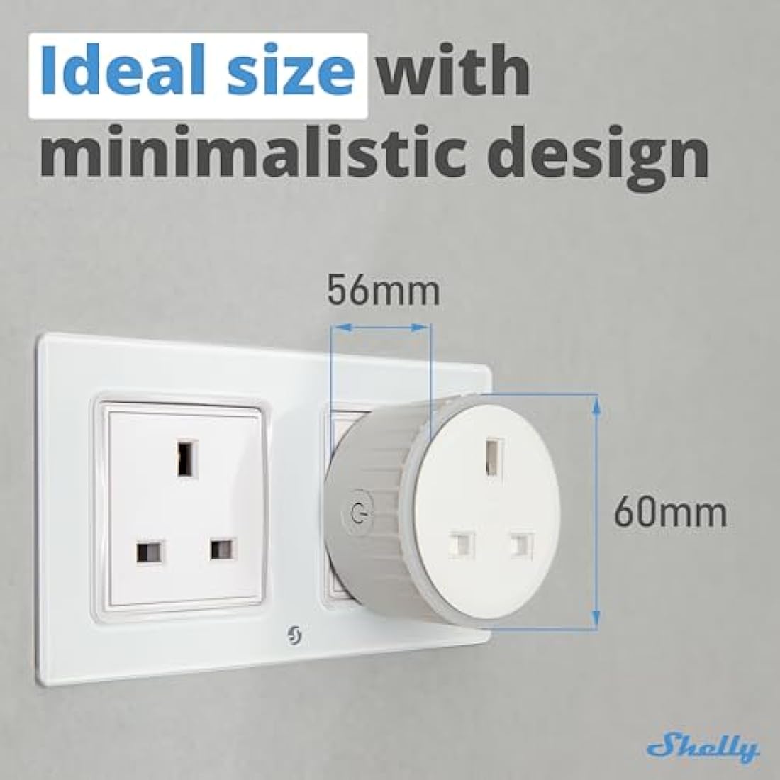 Shelly Plus Plug UK, Smart Wi-Fi Outlet with Power Metering, Remote Control Socket, Max 3000W, Custom Schedules, Home Automation(13A) Compatible with iOS, Android, Alexa, Google Home, SmartThings