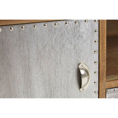 Store and display a variety of media devices in this contemporary cabinet. A pair of cupboards and a single drawer provide concealed storage space, their vintage style finger pull handles accentuating the upcycled aesthetic. An open shelf sits above the drawer.