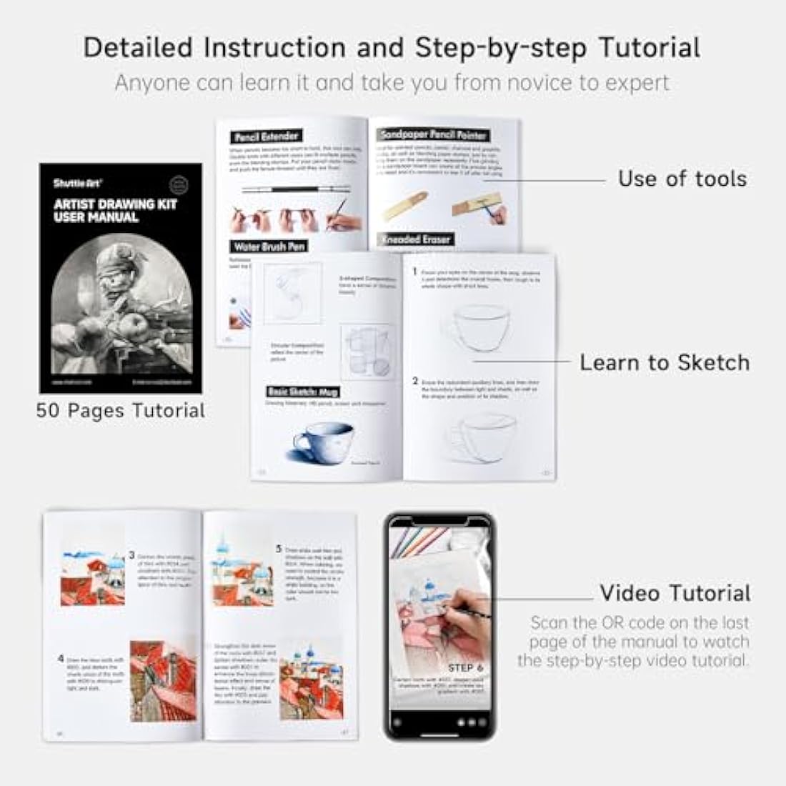 Shuttle Art 124 Pack Sketching and Drawing Pencils Set, Sketch Art Pencil Set with 4 Drawing Pads, Graphite Pencils in Zipper Case, Colouring Pencils for Artist Sketching, Art Set for Adults, Beginner