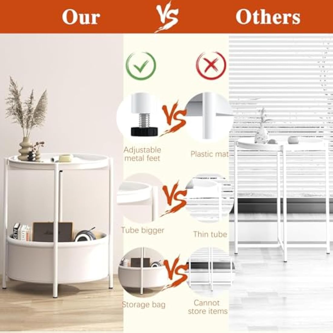【Perfect for All Spaces】Measuring 17.5 x 20.5 inches, this round end table with fabric basket is suitable for any space and offers a choice of 4 colors that can be matched in any way. Perfect for living room, bedroom, bathroom, balcony, bedside or sofa, to make your space more cozy.
