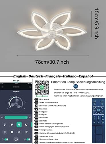 ceiling lamp fan dimmable,Easy to install, the wires are already connected, only 6 petals need to be attached, fixed fan blades: Φ 78 * 16 cm, 70 W, 6500 lm, voltage: 220-240 V (2-year warranty, we are at your service).