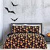 Sleepdown Halloween Spooky Ghost Black Orange Flannel Fleece Reversible Duvet Cover Quilt Bedding Set with Pillowcase Warm Soft Easy Care Bed Linen - Single (135cm x 200cm), 5056557512508