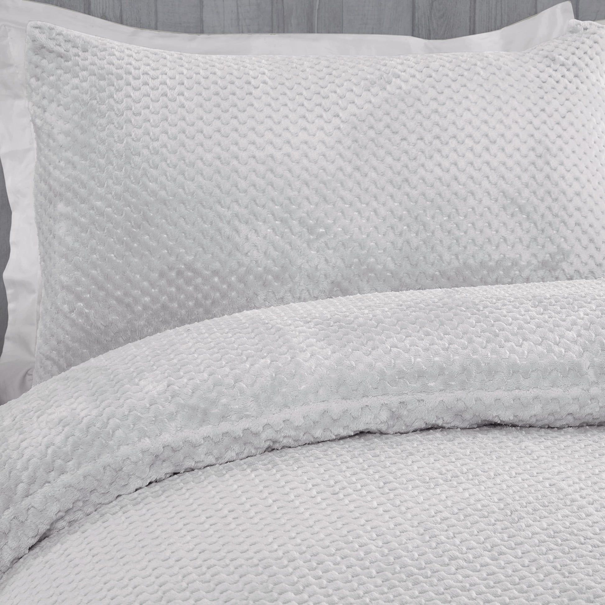 Sleepdown Waffle Teddy Fleece Silver Warm And Cosy Reversible Soft Duvet Cover Quilt Bedding Set With Pillowcases - King (220cm x 230cm)